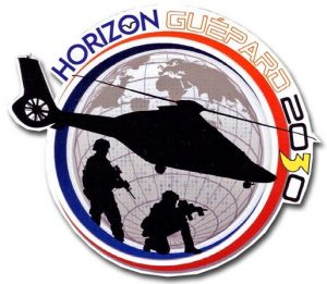 – le GUEPARD au centre, un peu incliné pour une impression de vitesse;
