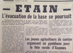 Pour Etain, 350 militaires pour les services généraux. Garde, entretien, approvisionnement technique et pré-stockage. La piste reste ouverte de 08h00 à 17h00 sur préavis seul transit, des appareils de transport.