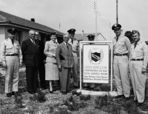 Le 1er octobre 1955, les renseignements généraux (R.G) faisait le point suivant: Hier, vendredi 30 septembre 1955 a eu lieu l’inauguration officielle de la Base aérienne américaine d’Etain-Rouvres, près de Verdun. Construite en trois ans, dans le cadre de l’Organisation du Traité de l’Atlantique Nord. Cette base est le siège le siège de la 388° Escadre de chasseurs bombardiers (561, 562 et le 563° groupe) de la 12ème Air-Force, appartenant elle-même à la 4° Force Aérienne Tactique Alliée. Elle est commandé par le Colonel Harold J. WHITEMAN, avec un effectif d’environ 1800 officiers, sous-officiers et hommes de troupe, plus une unité du génie de l’Air (120 hommes).